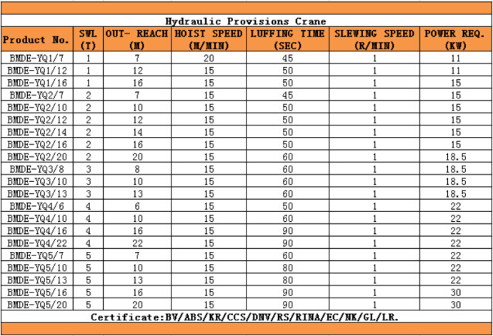 - Product description: Marine crane, Marine offshore Crane, Hydraulic Crane, Stiff Boom Crane, Fixed Arm Crane, Telescopic Crane, Folding Crane, Provisions Crane, Hose Crane, Cargo Crane, Cantilever Crane, Deck Crane