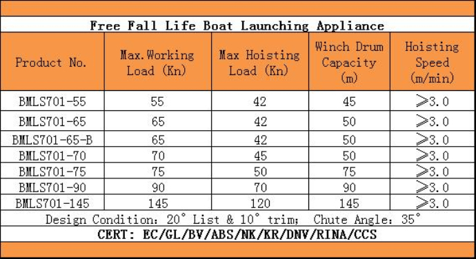 - Free Fall Life Boat Launching Appliance
