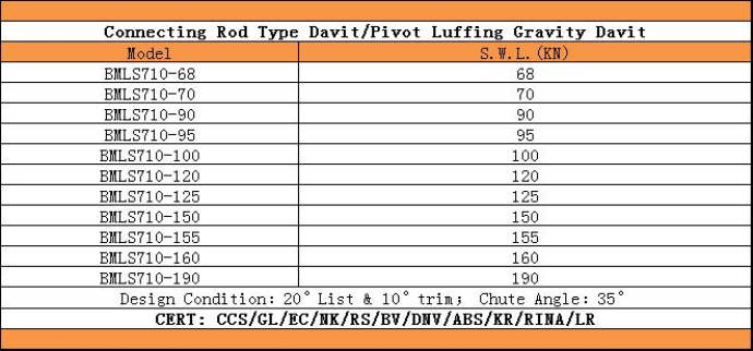 - Connecting Rod Type Davit/ Pivoting Luffing Gravity Davit
