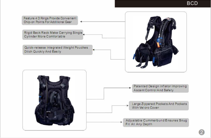 - Product description: BCD, 1st & 2nd stage Regulator, Wetsuit, Iycra Surfing Suit, Diving Mask, LED Diving Flashlight, Diving Instrument, Other Relative Diving Accessories